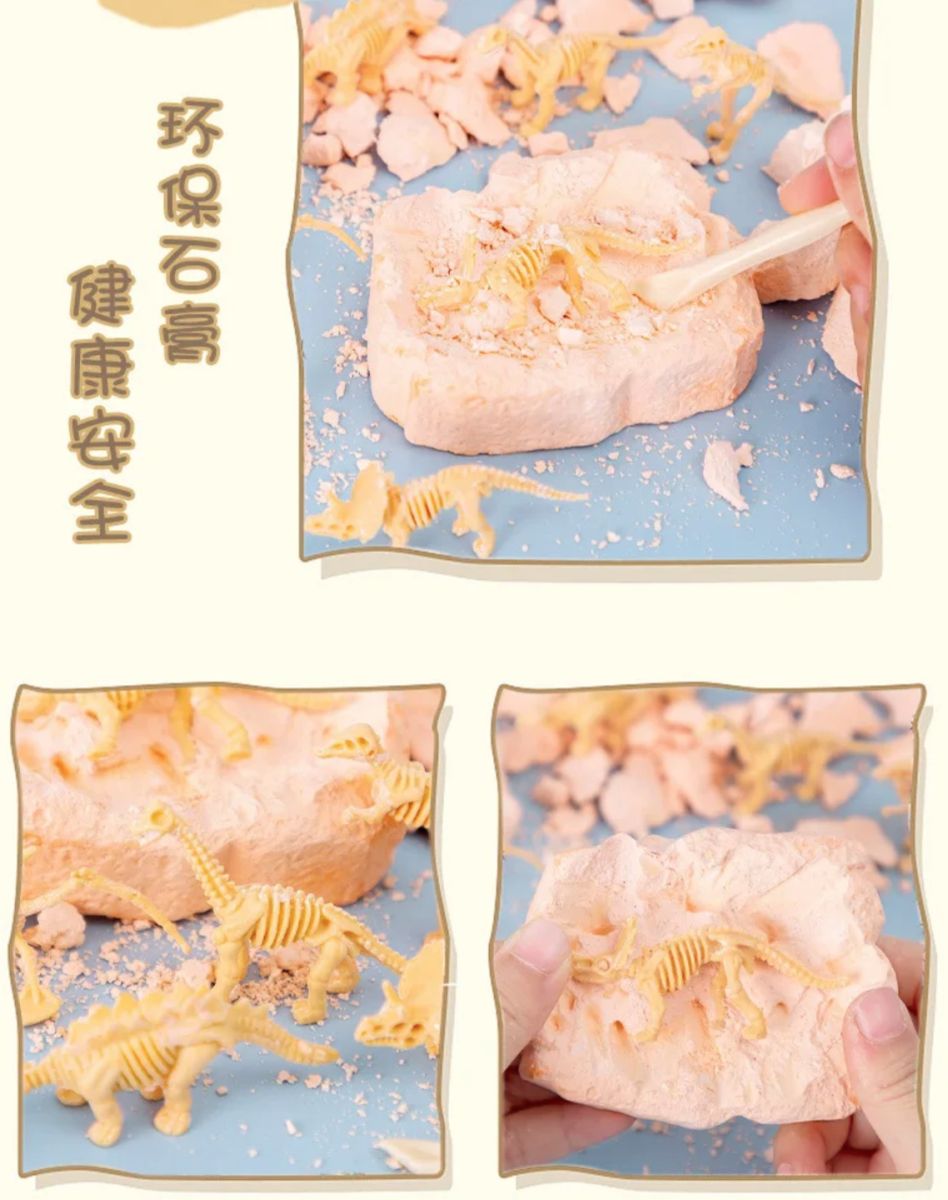 Концепция игрушки объединяет развлечение и обучение. Во время раскопок ребенок развивает терпение, аккуратность и мелкую моторику. Нужно постепенно снимать слой гипса, стараясь не повредить скрытые внутри детали. Такой процесс требует концентрации и внимательности, что делает игру не только веселой, но и полезной.