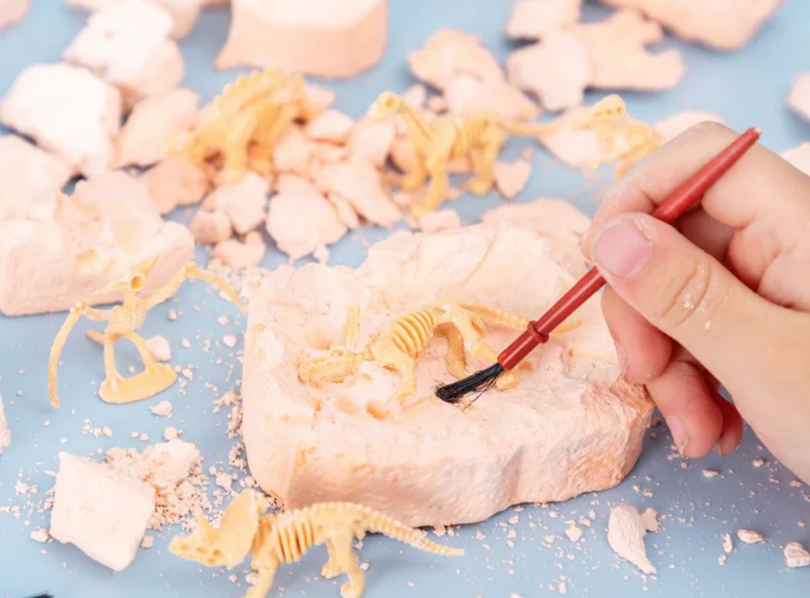 Важно учитывать возраст ребенка. Для малышей процесс может оказаться сложным без участия взрослых. Детям постарше такой уровень твердости, наоборот, добавляет интереса. Им нравится постепенно продвигаться вперед, слой за слоем открывая части скелета.
