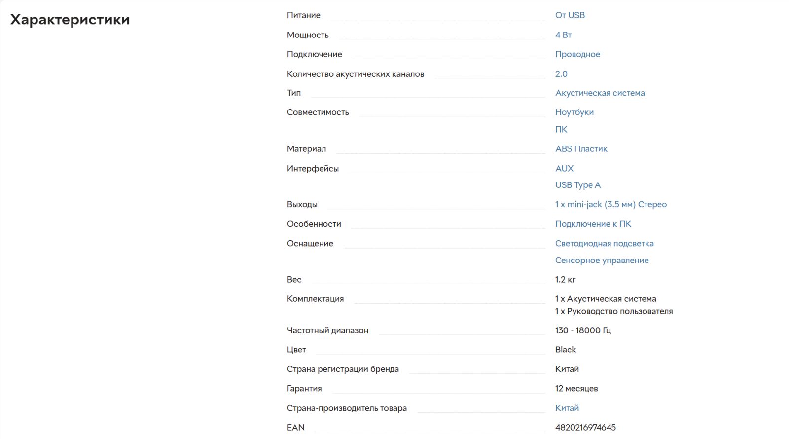 Формат классический для бюджетной настольной акустики — 2.0. Два динамика диаметром 2 дюйма, суммарная мощность заявлена 4 Вт (пиковая до 6 Вт). На бумаге цифры скромные, но для небольшого помещения, особенно спальни или рабочего кабинета, этого более чем достаточно. Эти колонки рассчитаны не на «качать подъезд», а на комфортное использование за компьютером на расстоянии вытянутой руки.