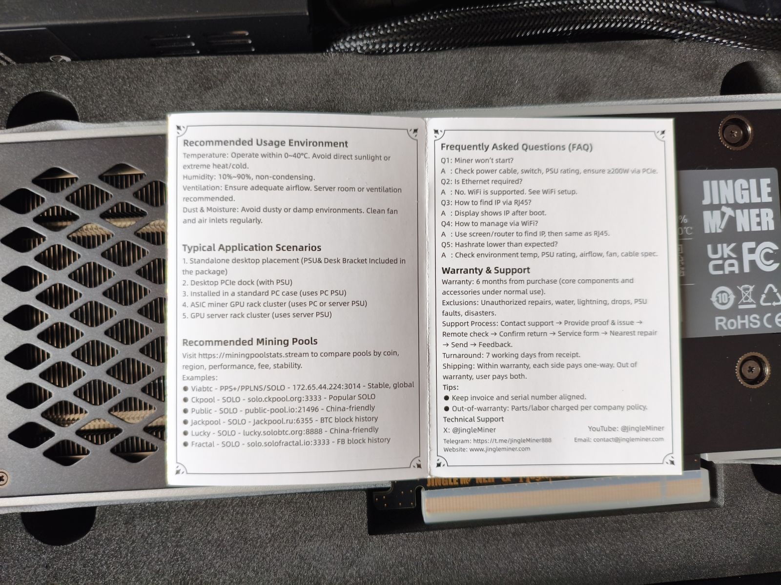 Также стоит учитывать гарантию 180 дней и позиционирование как нового устройства с заводской поставкой. Для криптооборудования наличие официальной гарантии и поддержки — существенный фактор, поскольку ASIC работают под постоянной нагрузкой и со временем могут сталкиваться с аппаратными сбоями.