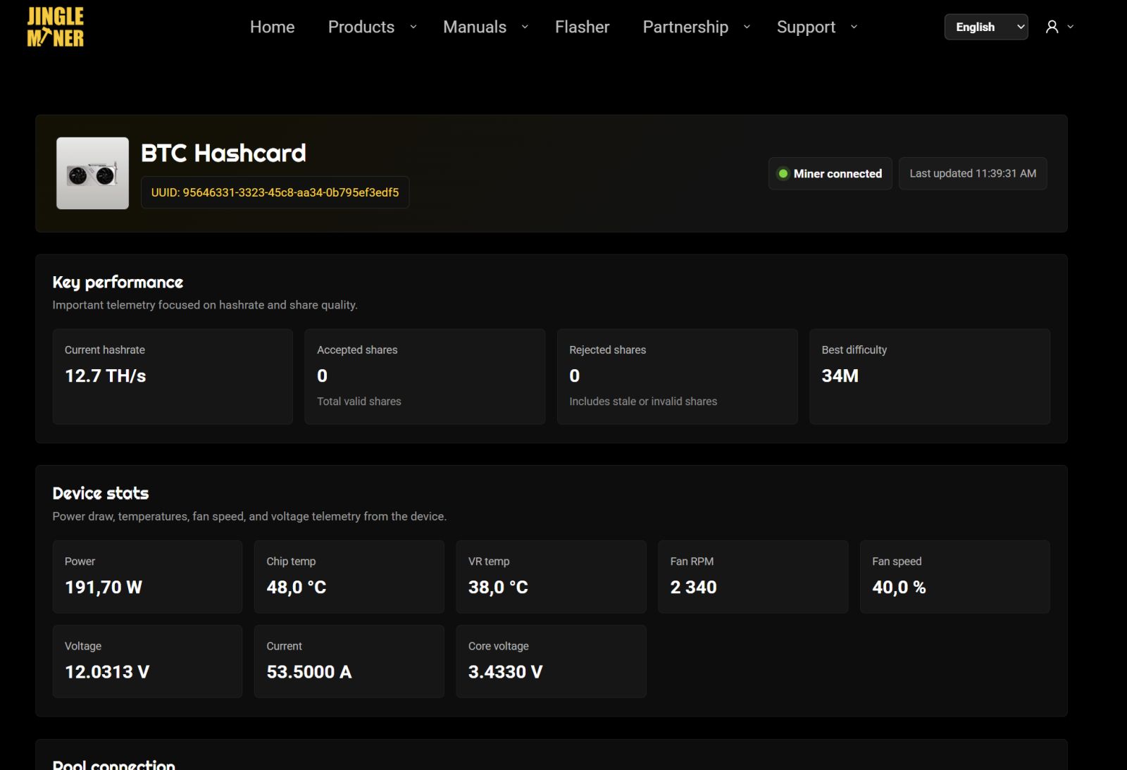 Однако нужно трезво оценивать рыночные реалии. Доходность майнинга напрямую зависит от сложности сети и курса Bitcoin. При текущей высокой сложности 12.5 TH/s дают относительно скромный вклад в общий хешрейт пула. Поэтому устройство скорее подходит для тех, кто рассматривает майнинг как долгосрочную стратегию накопления BTC, а не как быстрый способ получения прибыли.
