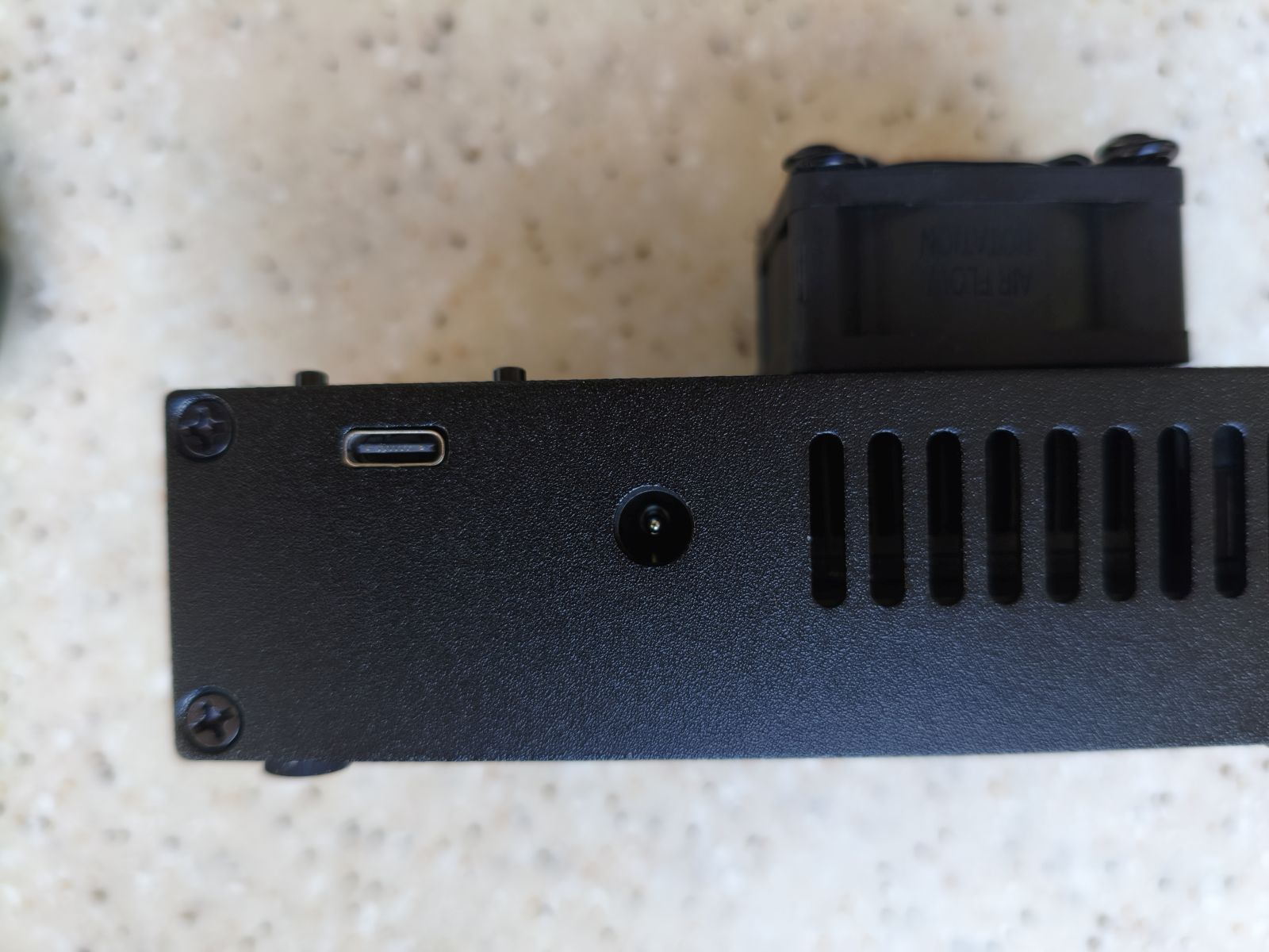 Корпус устройства выполнен из анодированного алюминия, благодаря чему он эффективно рассеивает тепло без избыточного шума. Даже при длительной работе температура корпуса остаётся в пределах нормы — около 50–55 °C, что впечатляет для такого компактного форм-фактора. Звук работы практически незаметен: вентилятор малых оборотов и продуманная вентиляция обеспечивают тихое охлаждение, что особенно важно при использовании в жилых помещениях.