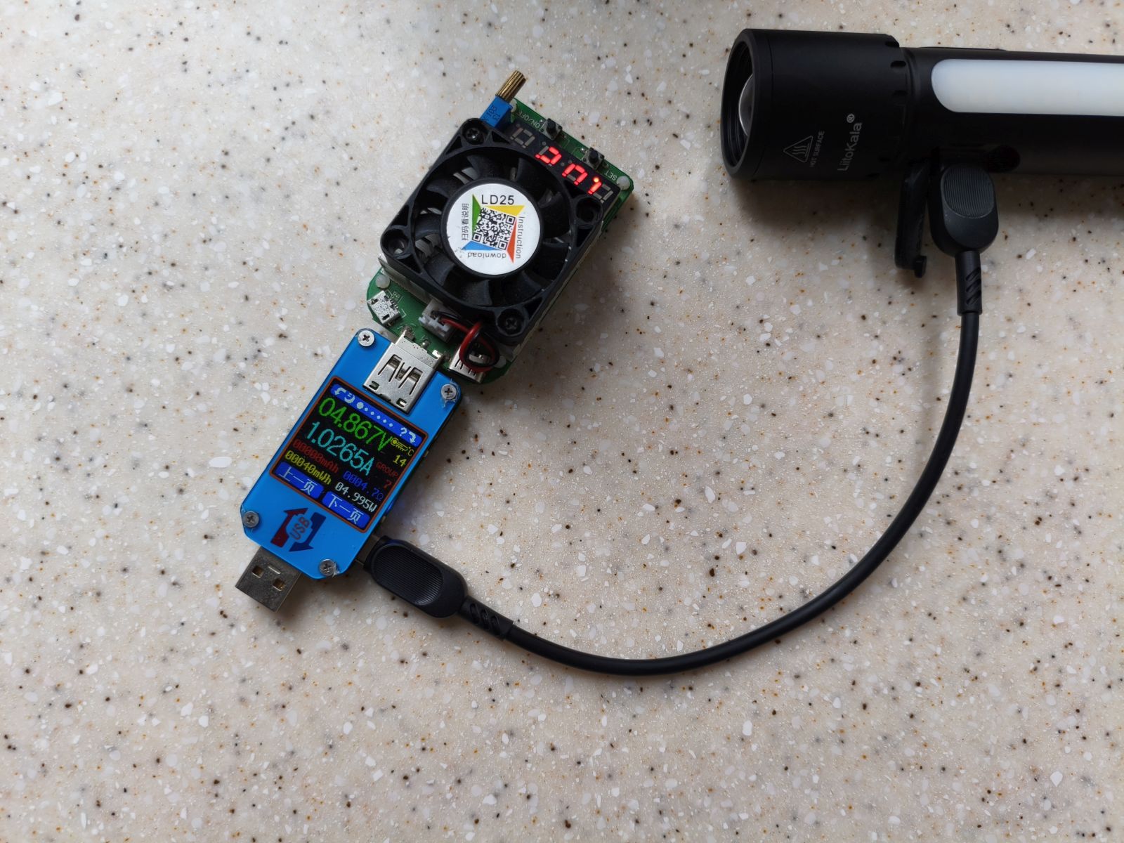 Есть и спорный момент — зарядка. Она осуществляется через Type-C, что удобно, но время полной зарядки может доходить до 6–6,5 часов. Для кого-то это не критично, для кого-то — ощутимый минус, особенно если фонарь используется активно каждый день. При этом функция power bank, пусть и заявлена, скорее носит вспомогательный характер. Рассматривать LF-X725 как полноценный внешний аккумулятор не стоит — скорее это аварийная возможность подзарядить мелкий гаджет в крайней ситуации.