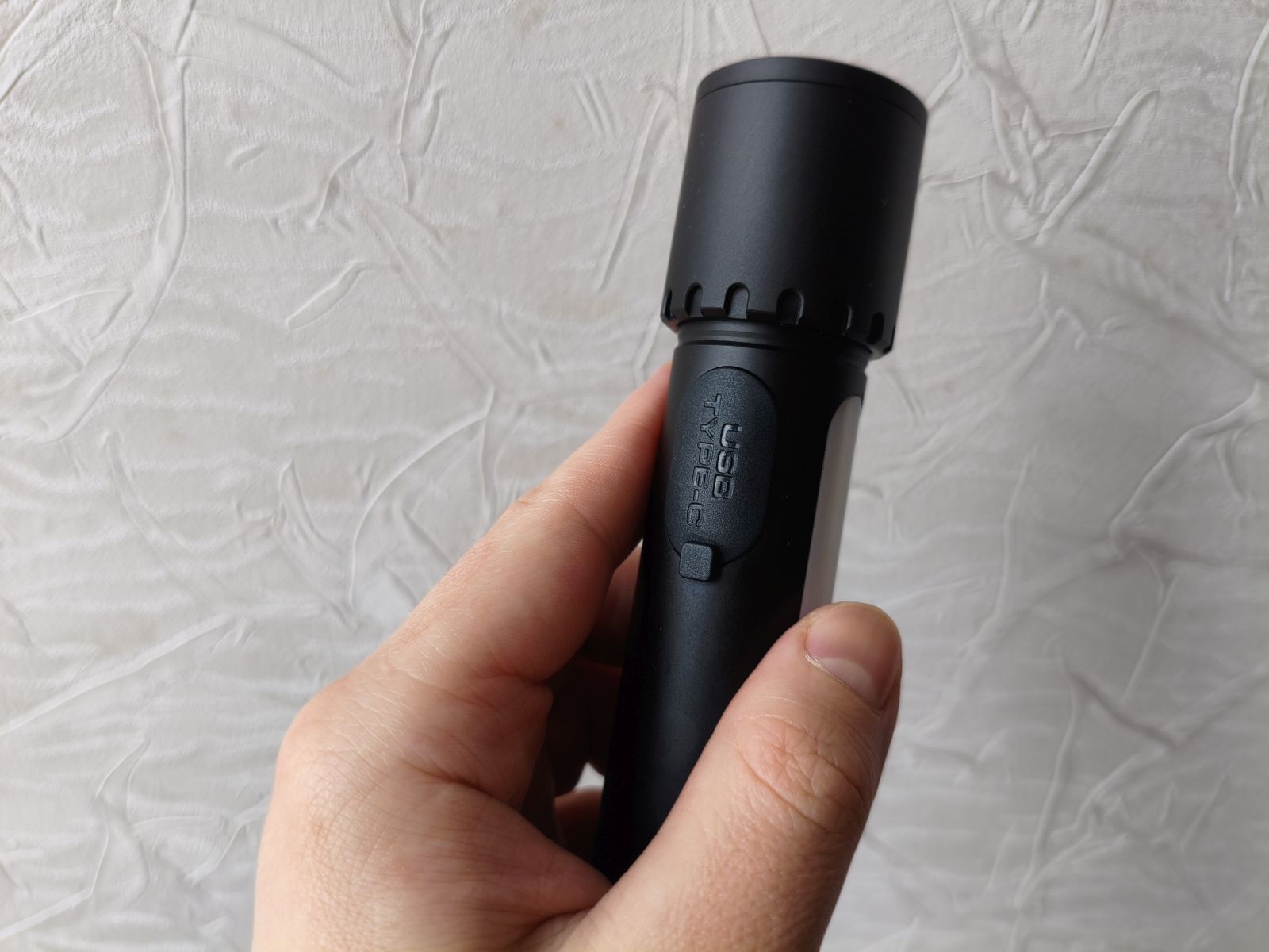 Габариты позволяют носить его как в кармане куртки, так и в бардачке автомобиля или в рюкзаке. Вес ощущается, но не тянет вниз и не перегружает руку. Это не ультралегкий EDC-фонарь, но и не массивный прожектор. Баланс между мощностью, размерами и удобством тут подобран удачно. В руке лежит уверенно, не перевешивает ни вперед, ни назад.