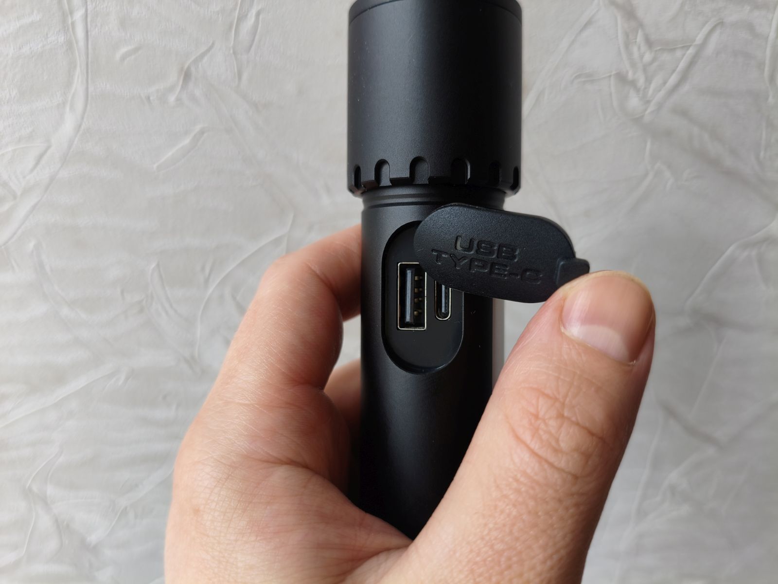 Защита от воды заявлена как полноценная, и судя по уплотнителям в районе разъемов, конструкция действительно рассчитана на дождь, брызги и влажную среду. Резиновые заглушки плотные, разъем Type-C защищен хорошо. В отзывах фонарь спокойно используют под дождем, в снегу, в сырых подвалах — проблем с влагой не отмечают. Это говорит о том, что герметизация здесь не формальная, а реально рабочая.
