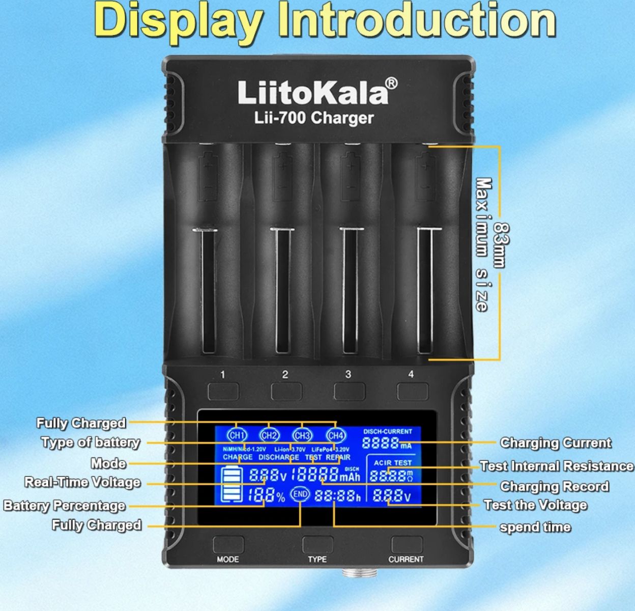 Обзор LiitoKala Lii-700 — инженерная зарядка для 18650/21700 и 26650 с тестом ёмкости и внутреннего сопротивления