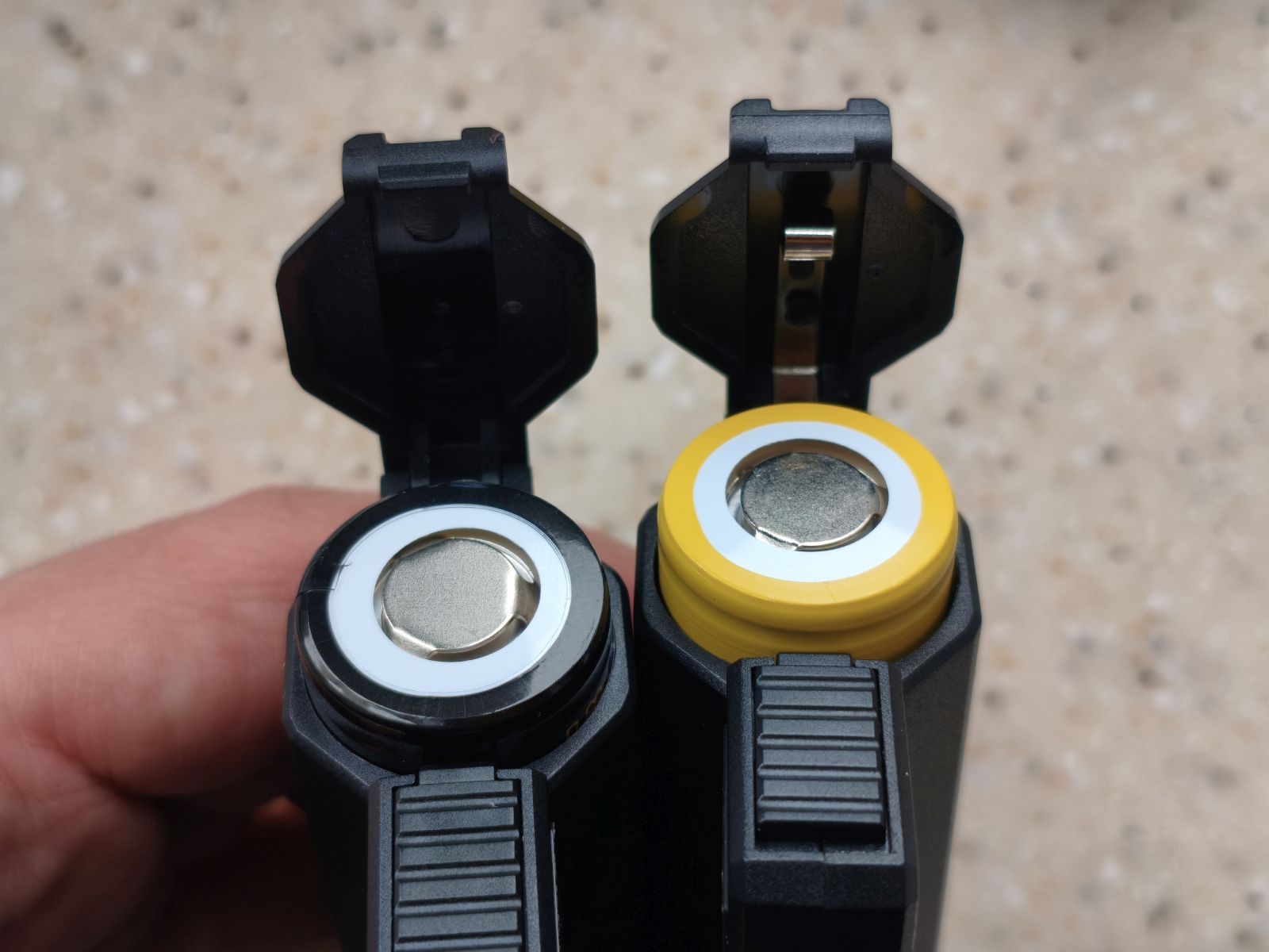 По замене аккумулятора оба решения максимально простые. Разобрать корпус несложно, батарея фиксируется пружиной. Однако здесь есть нюанс: при частой замене аккумуляторов качество контактов играет роль. В брендовой версии они обычно выполнены аккуратнее и плотнее прижимают элемент. В бюджетном варианте пружина может быть мягче, и со временем возможны небольшие люфты.