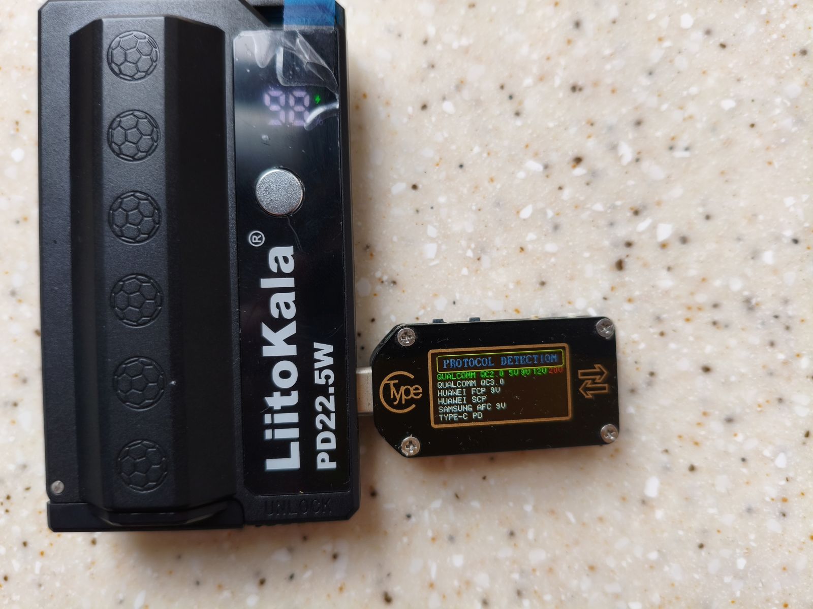 По выходным характеристикам ситуация аналогичная. LiitoKala указывает 5V/3A, 9V/2.22A, 10V/2.25A и даже дополнительный режим 12V/1.5A. Ноунейм-корпус заявляет 22.5W максимум через Type-C. По сути, это тот же уровень. Смартфон, планшет, наушники или портативная консоль будут заряжаться с одинаковой скоростью.