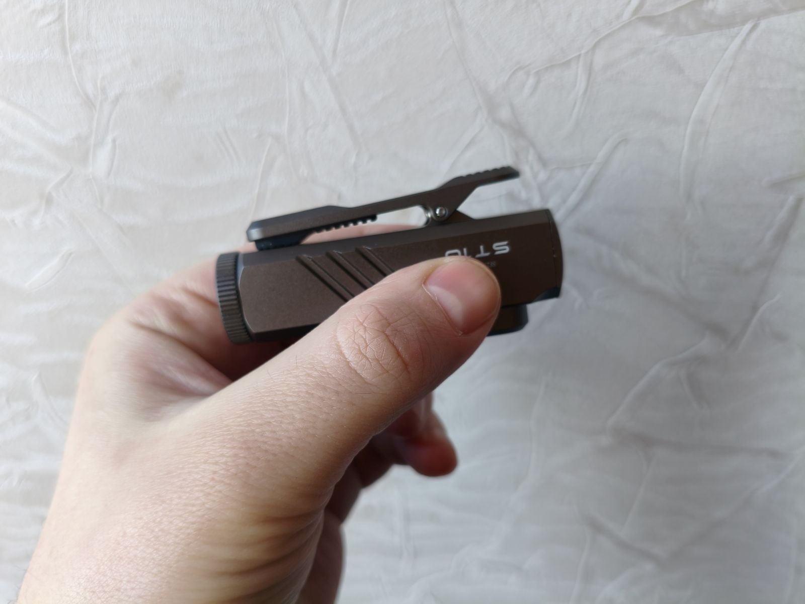 Размеры ST10 делают его идеальным кандидатом на роль EDC-фонаря. Он легко помещается в карман, не оттягивает одежду и не мешает при движении. Вес без аккумулятора составляет всего 49 граммов, поэтому фонарь практически не ощущается при ношении. При этом эргономика корпуса продумана так, чтобы он не выскальзывал из руки даже в перчатках или влажных условиях.